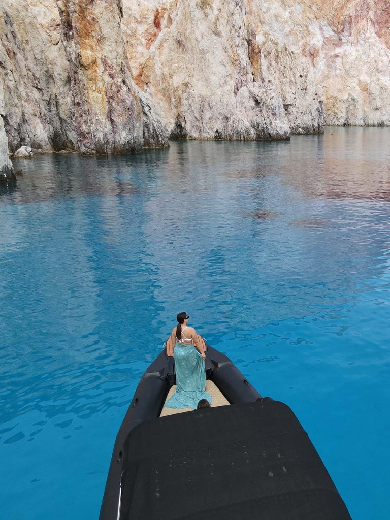 Blue Waters Bay on the island of Polyaigos impresses with its azure waters and endless views of the Aegean blue.