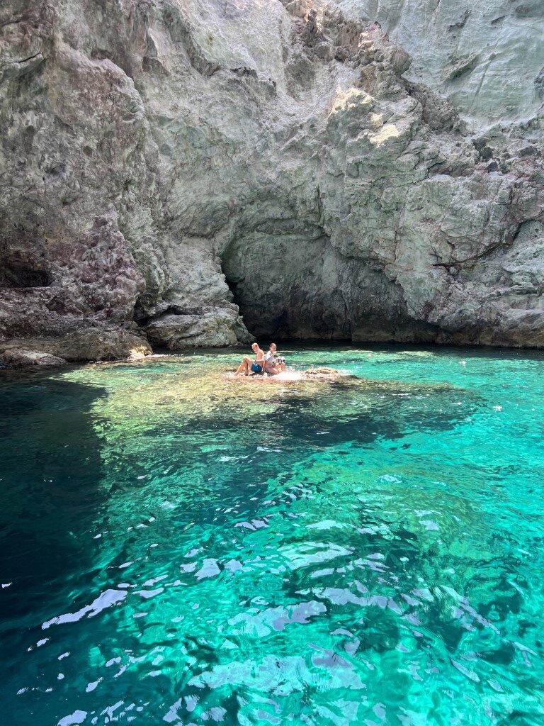 Fanara Cave beckons with its mystical allure, inviting adventurers to explore its hidden wonders amidst the rugged cliffs of Polyaigos Island.